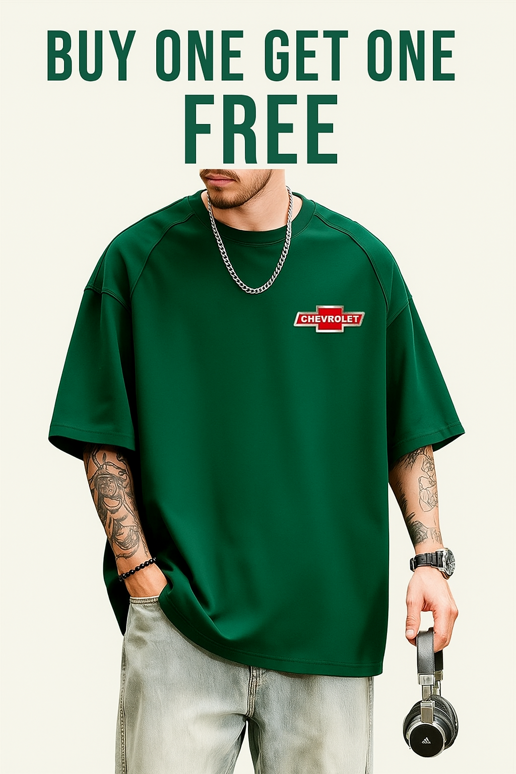 This oversized tee features a bold vintage Chevrolet graphic that celebrates classic American style. Its relaxed fit and striking back print make it a standout piece for any casual look.